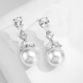 Rakol ep2441 thanh lịch sáng ngọc trai CZ dangle thả Bông tai mặt dây chuyền phổ biến Stud đồ trang sức không gây dị ứng trong 2025
