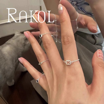 Rakol JZ7172 Hình Học Mới Đến Có Thể Điều Chỉnh Chuỗi Trượt Kéo Vàng Trắng Nhẫn Trang Sức Thanh nhã Cho Cô Gái Resizable Nhẫn Trong Kho
